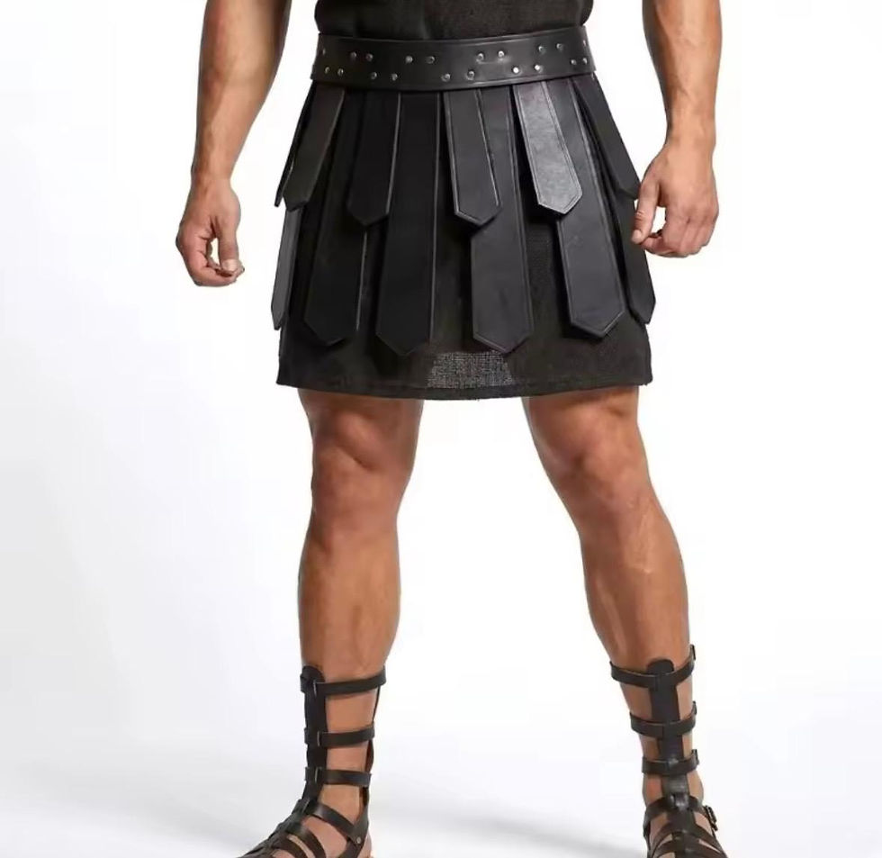 Fantasia Saia Armadura Gladiador Romano Medieval em Couro PU Cosplay